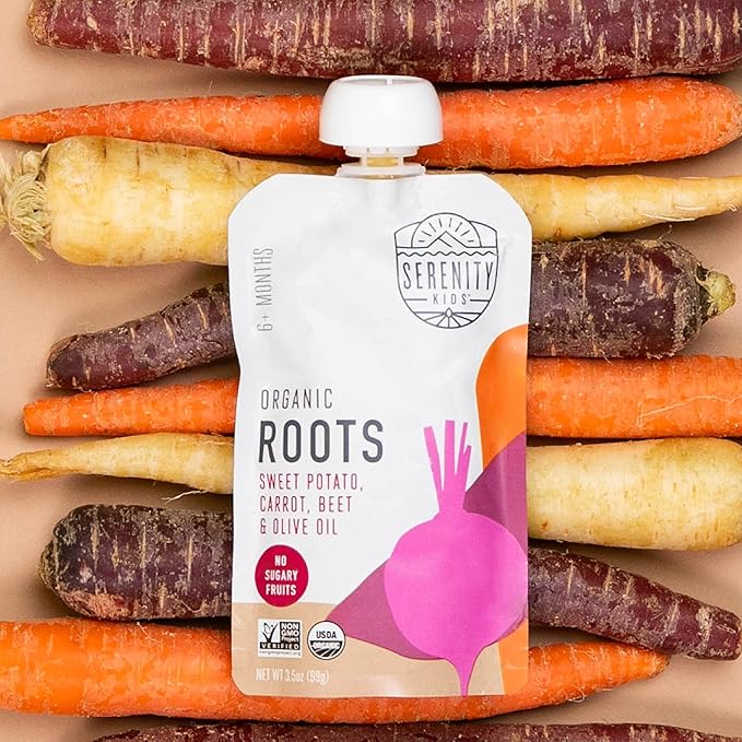 Serenity Kids 6+ Months USDA Organic Veggie Puree Baby Food Pouches | No Sugary Fruits or Added Sugar | Allergen Free | 3.5 Ounce BPA-Free Pouch | Roots | 1 Count