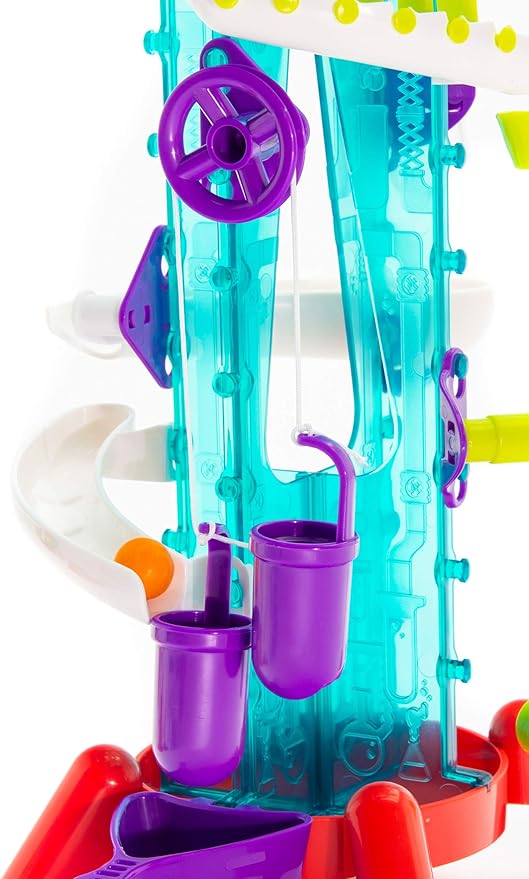 • As they roll down the tracks, the gumballs perform cool stunts via a pulley lift, pendulum, funnel, trampoline, pinball launcher, domino slide, and more!