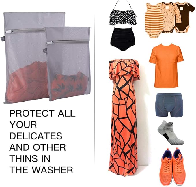 • 【Come in 2 Pieces】 1M (12x16 inch) & 1L (16x20 inch), perfect for washing underwear, socks, hosiery, tights, baby clothes, silk blouese, lace garments, t-shirts, derss shirts, swimsuits, gloves and scarves
