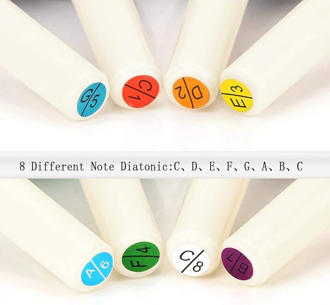 • ♪【PERFECT MUSICAL INSTRUMENT】- Set of 8 tuned metal hand bells with notes Middle C, D, E, F, G, A, B, High C ; color coded and marked on resin handles with corresponding note and scale position.