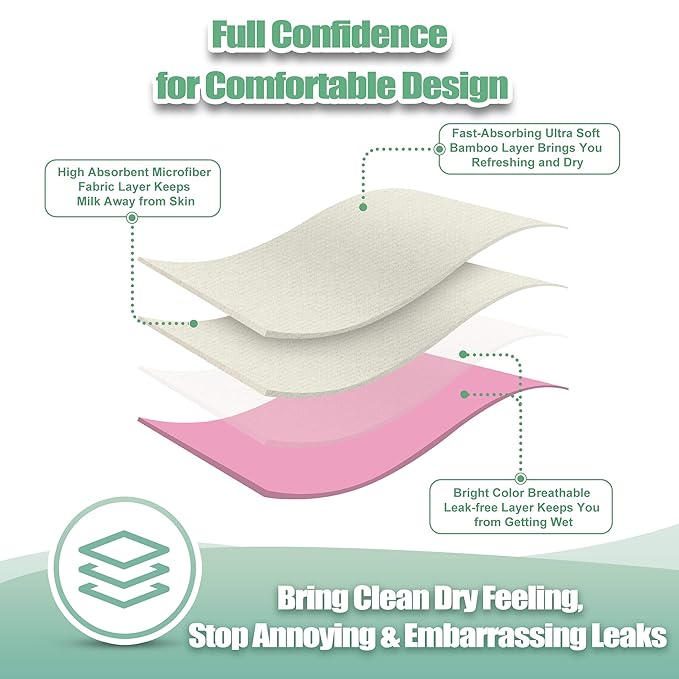 • Absorbent Middle Layer Microfiber provides strong absorbency ensuring no leaking at night; The Outer layer back side TPU lamination can efficiently keep wet away from mama bra or clothes; Nursing pads may not have the leek-free TPU as outer layer; Great for keeping off night time puddles and day time embarrassing leaks