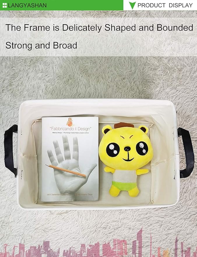 • Material: Polyester canvas linen and PE environmental protection waterproof coating. This storage basket easy to stand and foldable, Waterproof PE coating inner, which to achieve the effect of moisture resistant.