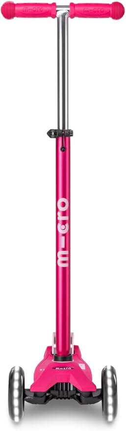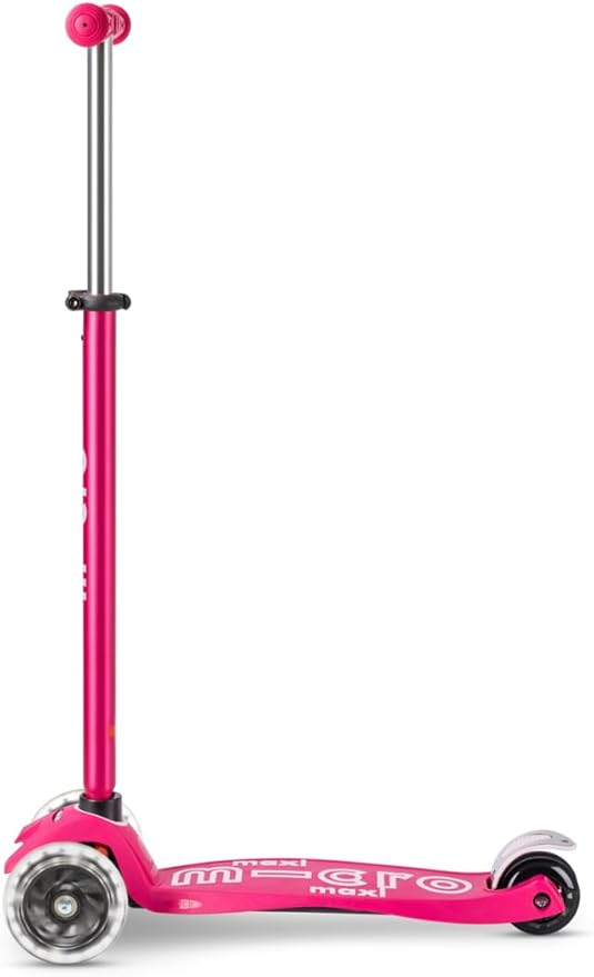 • Micro's 3-wheeled Maxi Deluxe LED scooter, with a lean-to-steer design, offers a stable ride that supports children as they curve and carve the sidewalk.. Features two front LED motion-activated light-up wheels. (No batteries required!)