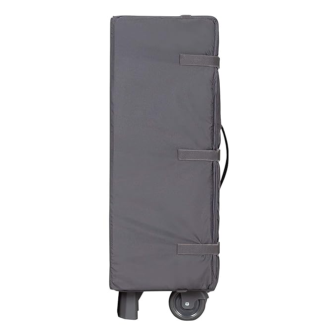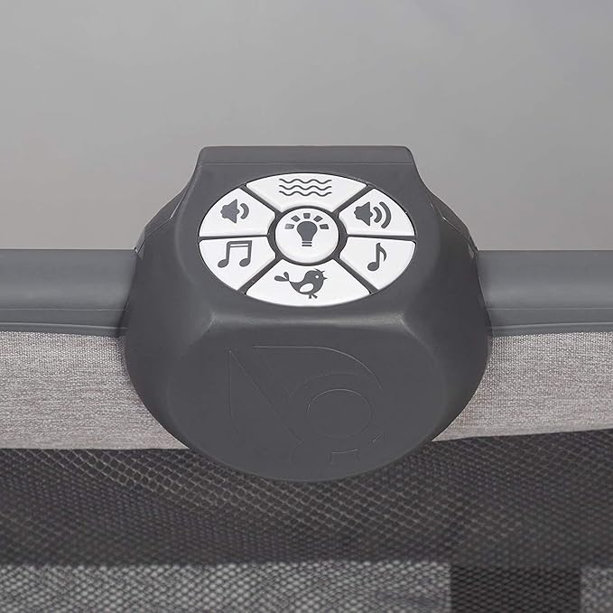 • Includes: Removable full bassinet, Changing table, Deluxe Parent Organizer, Large wheels with brakes, Travel/storage tote bag, Electronic music center with volume control, nightlight, and vibration