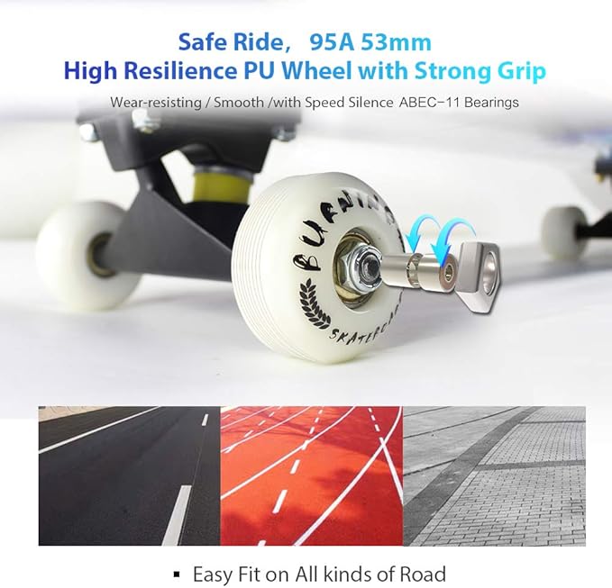 • 【EASY TO STOP】 When you want stop , just put one of your foot on the ground to stop it. Or you can lean your body to reverse direction to slow down the speed then stop your skateboard.