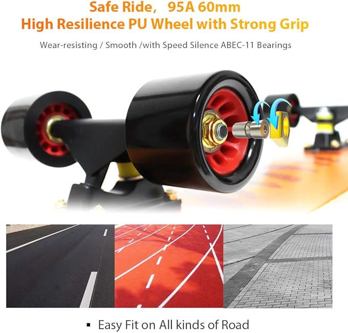 • 【EASY TO STOP】 When you want stop , just put one of your foot on the ground to stop it. Or you can lean your body to reverse direction to slow down the speed then stop your skateboard.