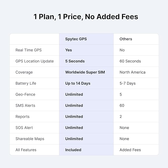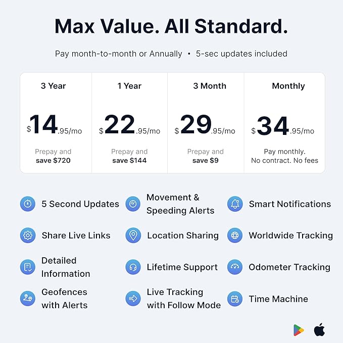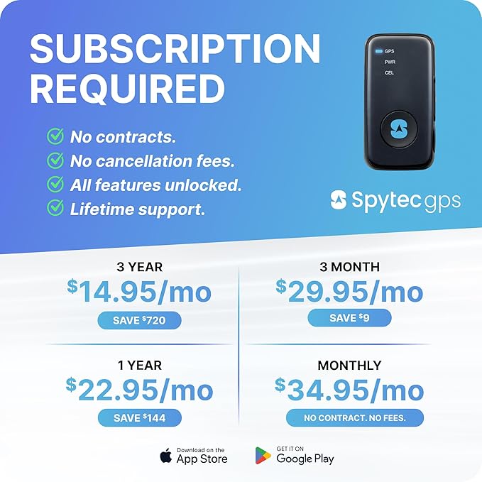 • LOW COST PLAN REQUIRED: Quickly download our easy-to-use app. Activate the device, choose your plan, and start tracking. Subscriptions as low as $14.95/mo. Get 24/7 support on GPS trackers with an active subscription. Worldwide coverage - update Network Mode in app before leaving the country.