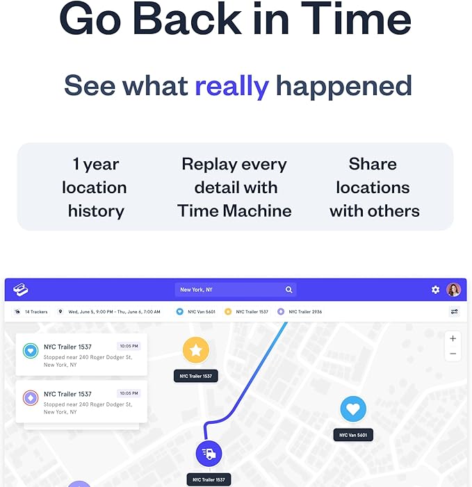 • REAL TIME GPS TRACKER FOR VEHICLES: Whether you need a tracking device for kids, or car trackers for your vehicle our mini GPS tracker and the supporting app will let you keep track in real-time. Get alerts when the tracker enters or leaves a geofence area or get speed notifications if your teen driver or fleet driver is traveling too fast. Use the Time Machine feature to also review history and see where a tracker was, where it moved, and what was around it at any given point.
