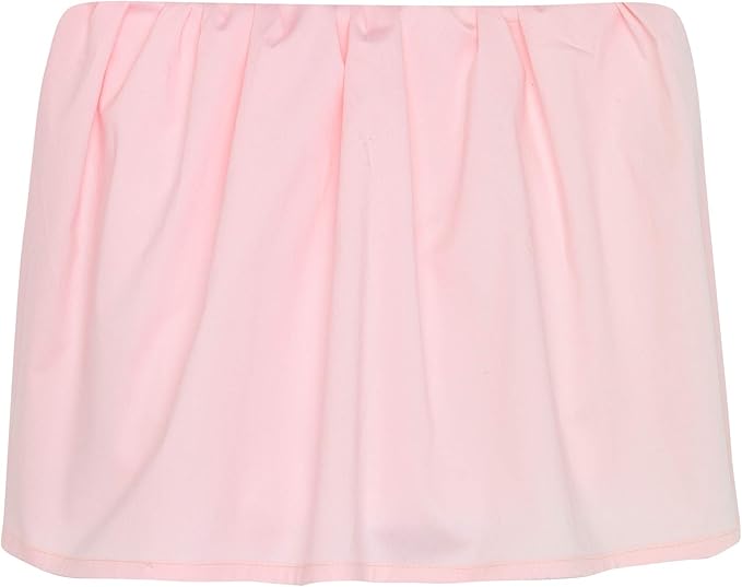 • The solid pink crib skirt is shirred for a more luxury/designer style
