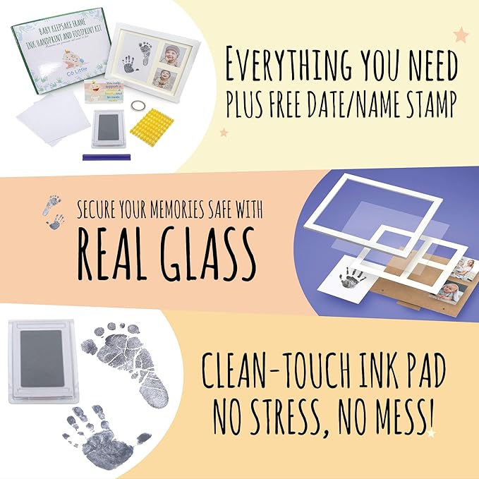 • Our superior quality with a bonus - Our quality is based on what other newborn footprint kits couldn't accomplish. Your frame will be made from durable wood with real glass cover, so your memories are completely safe. You’ll get a 100% baby safe non-toxic ink pad which will able to capture life-like details, so you’ll be able to see every line of your child’s hands and feet. That’s not all… enjoy our Alphabet stamp so you can display your child's name and birth date.