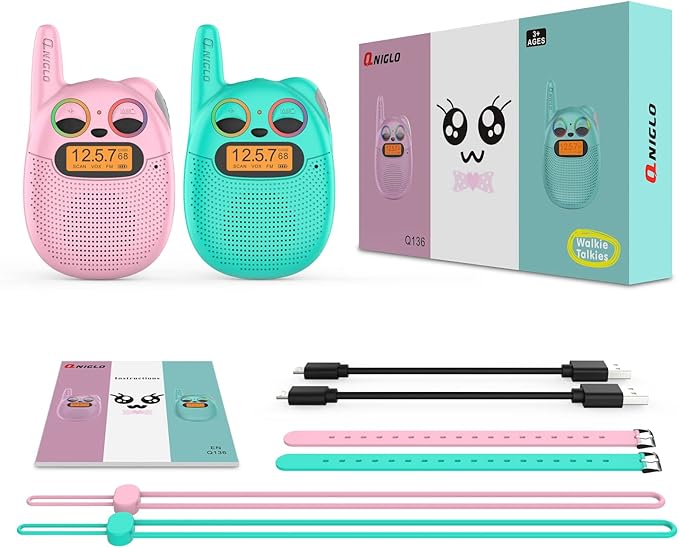 • ๐—ฃ๐—ฒ๐—ฟ๐—ณ๐—ฒ๐—ฐ๐˜ ๐—š๐—ถ๐—ณ๐˜๐˜€ ๐—ณ๐—ผ๐—ฟ ๐—ž๐—ถ๐—ฑ๐˜€: Qniglo rechargeable kids walkie talkies 2 pack come in adorable colors and are well packaged in a stylish gift box, look attractive to kids. Excellent color box design makes it a wonderful birthday gift, Easter gifts, Valentine's gifts, Children's Day gifts, and Christmas gifts for 3 4 5 6 7 8 9 10 11 12-year-old girls, boys, or family group outdoor games like hiking, camping, traveling.