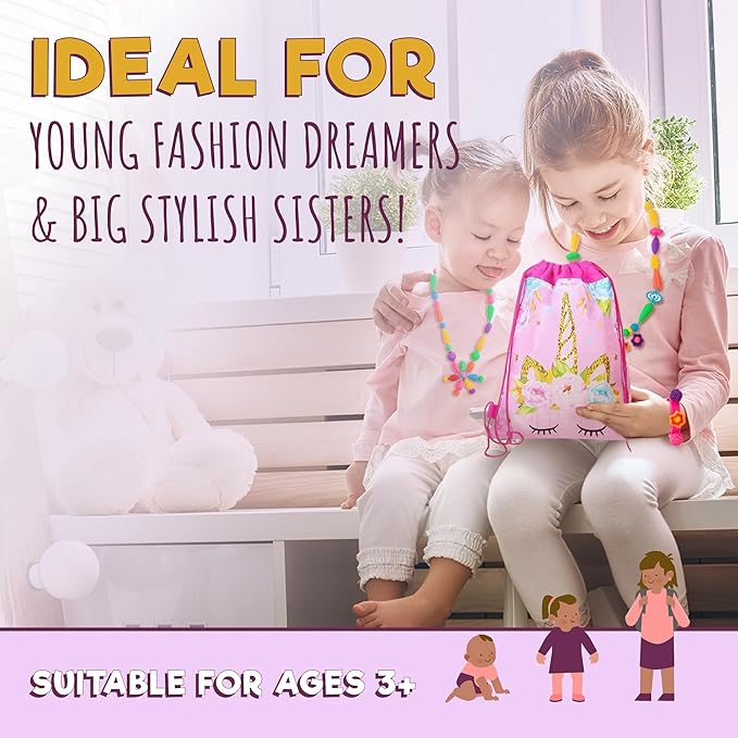 • [COMPLEMENTARY GIFT] – Every Pop Beads Jewelry Making Kit comes with a beautiful and stylish GIFT - A UNICORN DRAWSTRING BAG to carry the jewelry and any toys for girls. Little girls can create them at home or on the go with friends.
