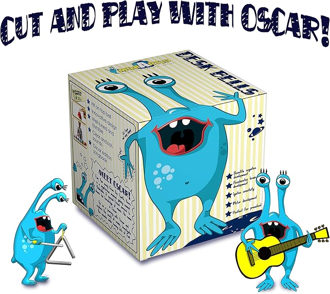 • DESIGNED FOR KIDS: Meet Oscar, our cheerful character from the galaxy of rhythms & melodies! Oscar is passionate about kids' musical instruments and delights in teaching children how to play the toddler music bells. With our musical songbook and deskbells, learning becomes a fun-filled experience, full of laughter and creativity. Perfect hand bells for kids, parents, beginners, preschoolers, therapy, daycare centers, kindergarten, teachers, and classrooms.
