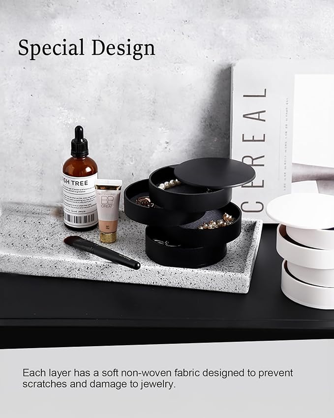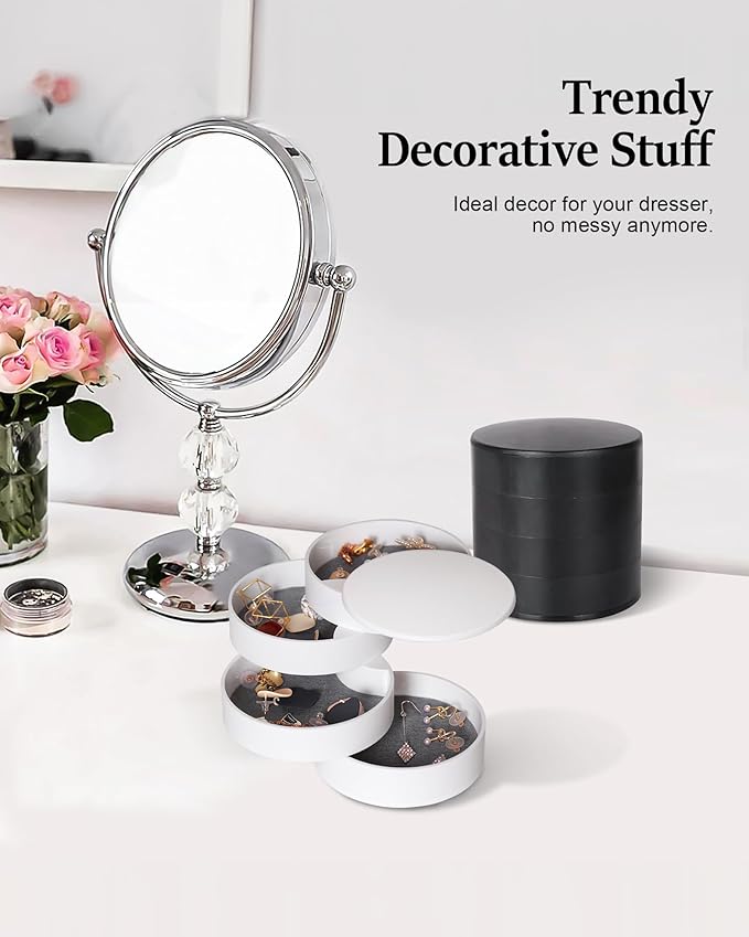 • ♥【Rotating Jewelry Organizer】- Simple and modern style, rotate into any look you like, excellent dressing table decor; it's a compact cylinder when closed, and isolate dust to better maintain the luster of jewelry.