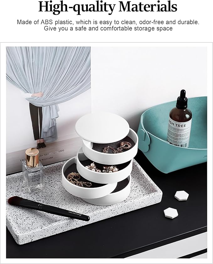 • ♥【High Quality Materials】- Made of premium ABS plastic, non-toxic, odor-free and durable. Internal soft non-woven fabric for preventing scratch and tarnish, give you a safe storage space to protect the jewelry.