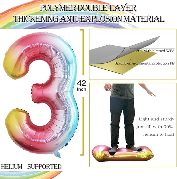 • 2 pcs Number 3 Balloons in Package,Double Guarantee for the 3rd Birthday Party or 33rd Birthday Party