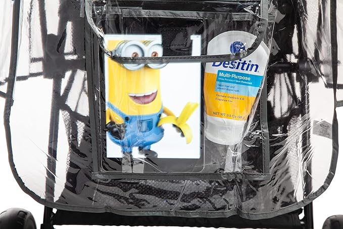 • UNIVERSAL SIZE: This universal stroller rain cover fits most travel systems makes and models. For added convenience, our umbrella stroller rain cover is also equipped with a storage pocket for baby essentials, smartphone and cash.