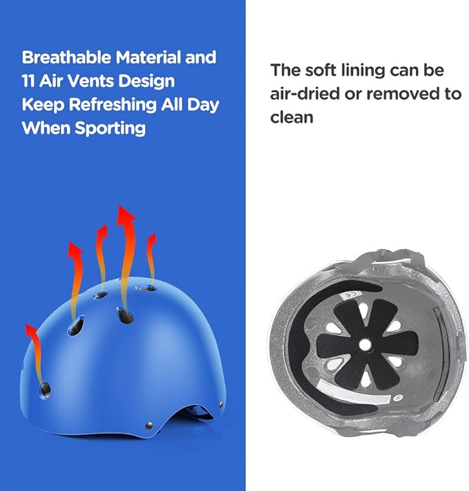 • Wonderful Material -- Our kids protective gear set is adopted anti-scratch high hardness PVC shell padded with Soft EVA material. Those high-quality liners are not only durable for many years, but also breathable. Adopted ventilate fabric to keep cool and clean while biking, riding, cycling and skateboarding