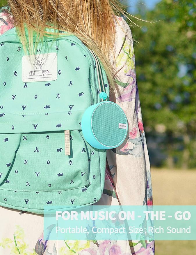 • 【MORE BASS LESS SPACE BIG SOUND】 This INSMY wireless speaker is built with an active deliver and extra passive radiator in this compact small size, delivering immersive and stereophonic audio for you from the beach to the bathroom. It's really loud, pure, musical, and dynamic. The small portable speaker impresses with a loud and clear sound performance even under showering noise.