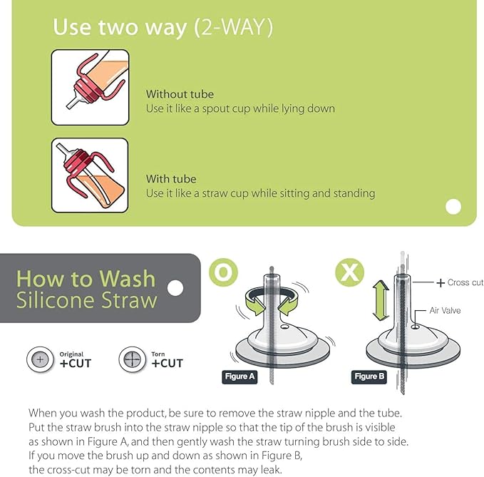 • USE 2-WAY : Without tube you can use it like a spout cup while lying down. With tube you can use it like a straw cup while sitting or standing