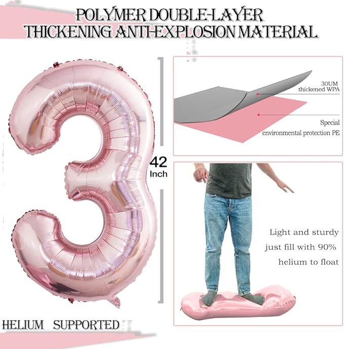 • 2 pcs Number 3 Balloons in Package,Double Guarantee for the 3rd Birthday Party or 33rd Birthday Party