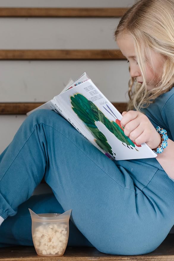 Zip Top Reusable 100% Silicone Baby + Kid Snack Containers- The only containers that stand up, stay open and zip shut! No Lids! Made in the USA - Orange Cat