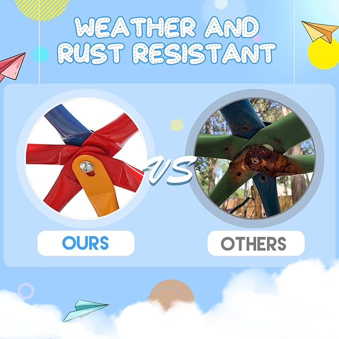 • All-Weather Durability: Rain or shine, these monkey bars stand strong! The rust-proof steel frame ensures years of use, whether as a kids' climbing dome or an outdoor play structure. A long-lasting investment for active families!