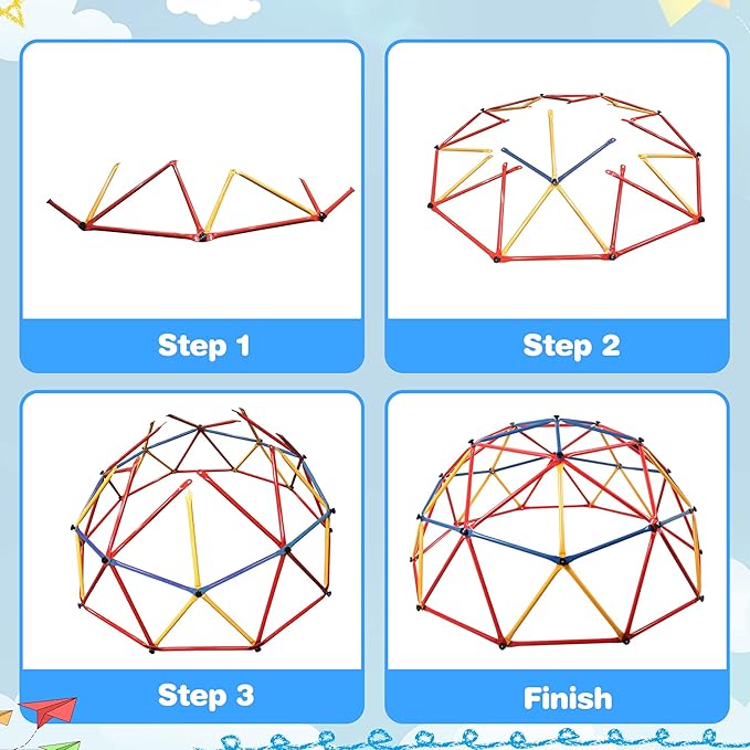 • Quick & Easy Assembly: Set up your geodesic dome in just 60 minutes—no special tools required! This kids' jungle gym outdoor for dome climbers includes all hardware, making it simple to switch between a toddler jungle gym setup and advanced configurations.