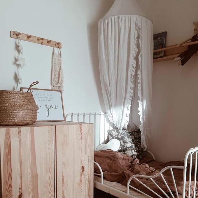• HOME DECORATION - MOMAID stunning handcrafted round canopies are designed to make an inspiring and dreamy space for your little ones. Create a beautiful play space, reading nook or whimsical bedroom with our canopies. Place them over the bed, creating a magical spot to dream at night, or create a lovely little quiet nook, reading and endless imaginative play, give an instant touch of romance to the decor