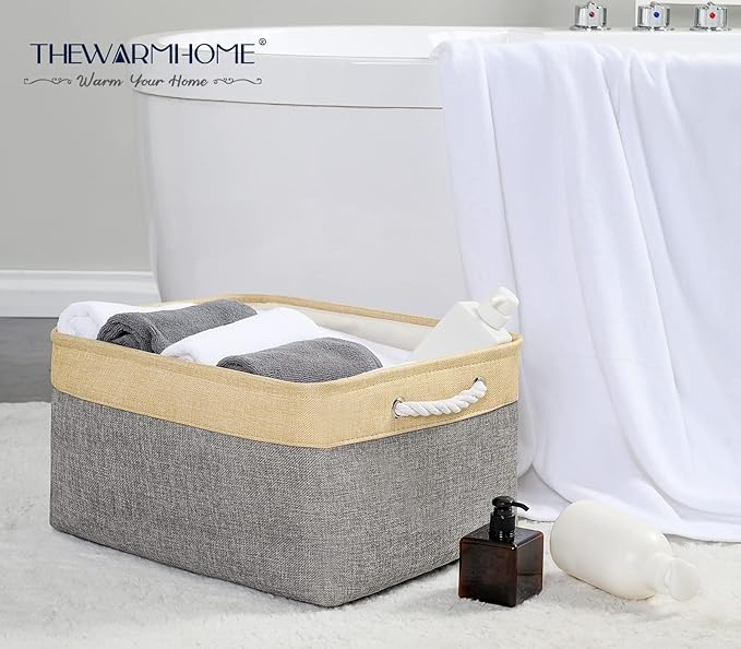 • 【PRACTICAL】 : TheWarmHome storage bins provide a solution to many storage needs: organizing and storing baby products, clothes, shoes, kid’s toys, pet products, toiletry storage, laundry clothes, towel, blanket, bedsheet, sport gears, many other uses. TheWarmHome basket can be used in bedroom, living room, study room, rest room, kitchen, office, closets and cabinets. It's an excellent choice for keeping your space nice, tidy and organized.