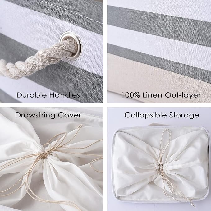 • 【& STURDY】: This fabric baskets outside fabric is made of linen &thicken Environmental EVA,and used a lining material for the inside. Sturdy metal rod frame around the top keep the basket shape. Strong seams and rope side handles, make this storage basket are sturdy and easy to grab. Stand up great on their own even unfilled and ensure a greater product lifespan.
