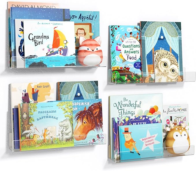 • [High-Quality Acrylic: Durable and Crystal Clear] Crafted from 50% thicker acrylic, this bookshelf is built to withstand daily use without yellowing or cracking. Its crystal-clear design enhances visibility, making it easy to locate books, toys, or art supplies while blending effortlessly into any room.