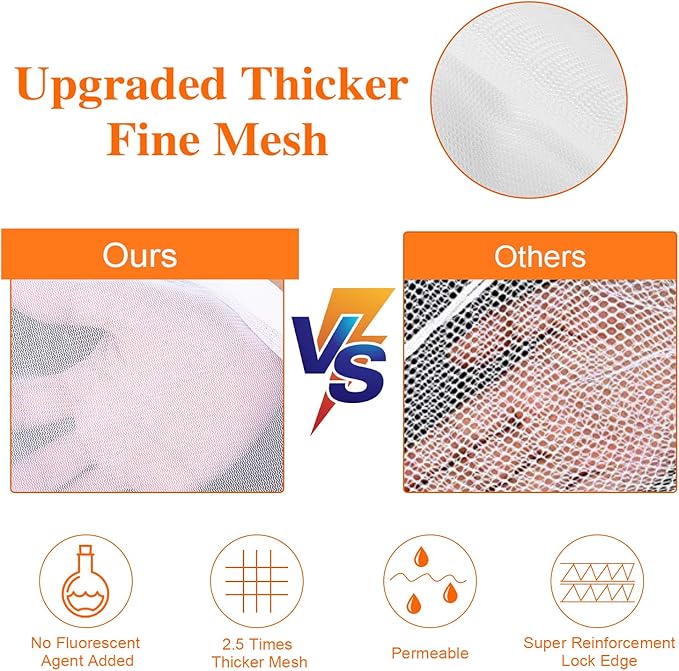 • [Wide Mesh] - With wider fine mesh holes, soap and water flow easily through the mesh for optimal cleaning, your clothes can be washed very clean and dry quickly. Protect your delicates from tangling, snagging, or pulling in washer or dryer.
