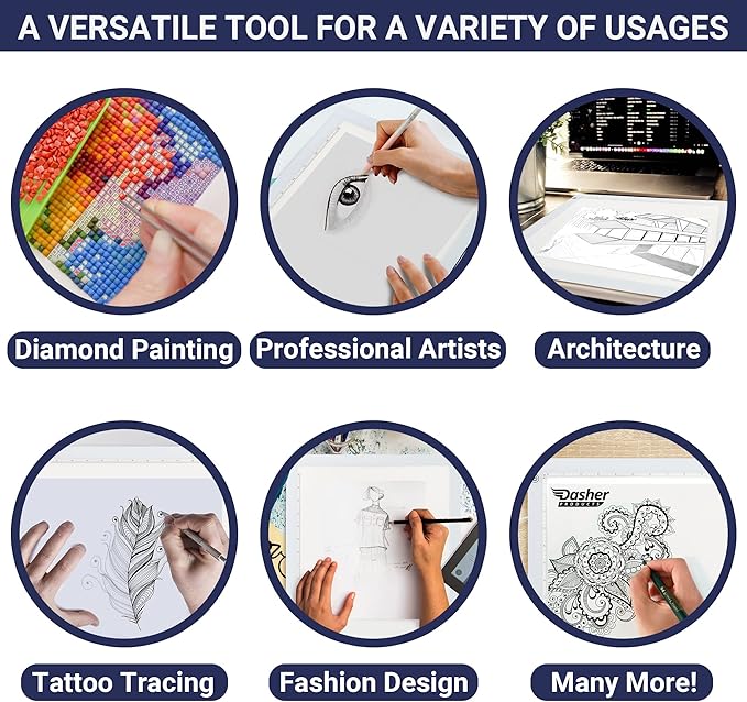 • Versatile Applications: Designed for a wide range of uses, this light table is ideal for sketching, tattoo tracing, architectural drawings, scrapbooking, and calligraphy. It’s also great for embossing, stained glass design, 2D animation, X-ray viewing, and industrial design. Whether you're an artist, architect, doctor, or hobbyist, this tracing pad is your go-to tool for projects that require precision and clarity