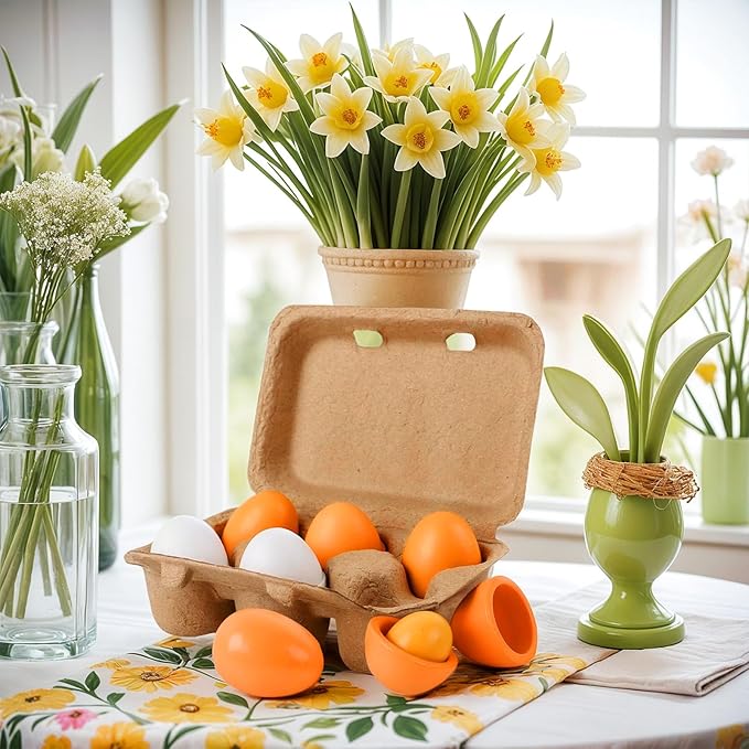 • The Set - This 6 piece wooden play food set includes 3 yellow and 3 white eggs. Three eggs are independent and complete, three are separable, divided into yolks and shells, perfect for pretend play. These egg Kitchen Toys comes in a standard-size gift box, perfect for gifting to kids