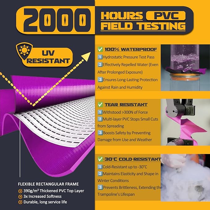 • 🏆️【Trusted Quality ULTRAPOWER SPORTS trampoline pad】 As a top-tier trampoline replacement mat brand, we prioritize safety and durability. We believe that you who appreciate quality will know how to choose wisely. The double industrial-grade stitching and triple-layer construction (PVC + PE + padding) outperform other flimsy covers. Whether replacing worn-out mats or upgrading old trampolines, choose our trampoline pad replacement that balances affordability with professional-grade performance.