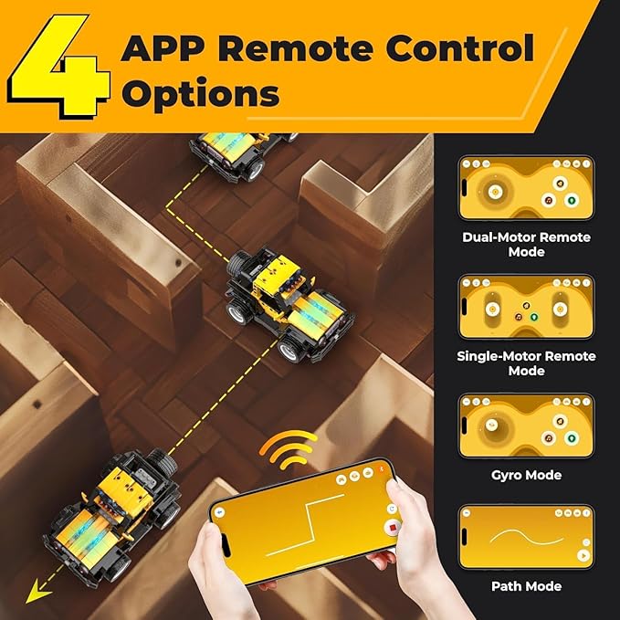 • 4 App Control Modes for Smart Play: Control your robot via Bluetooth with 4 user-friendly modes: dual-motor, single-motor, gyro, and path mode. Download the free Apitor Kit app for step-by-step instructions, and watch your child learn programming and robotics independently!