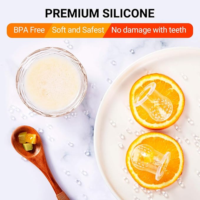 • YOUR BABY’S SAFETY IS OUR PRIORITY - Jochebed’s commitment to product safety ensures that our baby fruit feeder pacifier are made from the highest food grade silicone that is USA approved and certified by Wordl’s Leader in Testing, to be BPA Free, Latex Free, Leas Free, no smell so it is safe for baby to start introducing baby to solid food