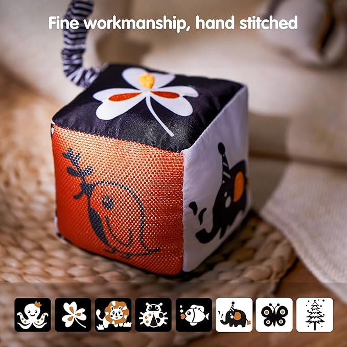 • Wide application: whatever play these infant toys on the floor, or hanging them onto the crib,stroller, you can fix them anywhere by the hooks freely, or remove these hooks and just let the baby play these cube blocks toys freely.