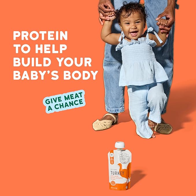 Serenity Kids 6+ Months Turkey Puree Baby Food Pouches - Ethically Sourced BPA-Free Pumpkin Puree & Organic Veggies - 3.5 Oz, 12 Pack