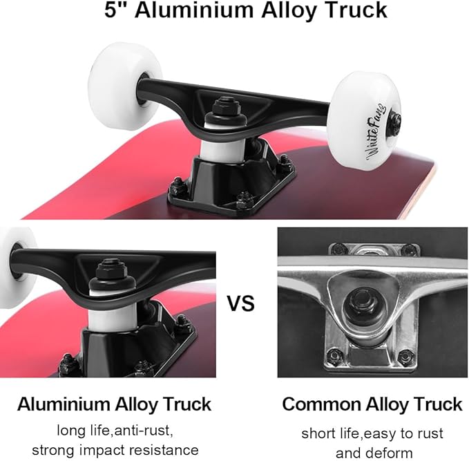 • 🛹 Take You a Better Experience: High speed 95A PU wheels work with ABEC9 bearings and 95A High rebound PU bushing. Give you better balance control and shock absorption effect, bring you a better skateboard experience.
