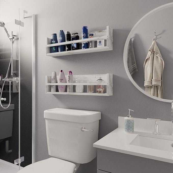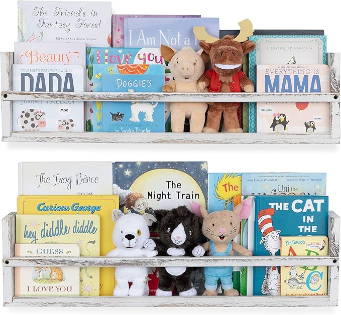 • Multiuse Shelf: Thanks to these storage shelves' wooden and simple design, you can use them not only in your kids room or nursery but also in different places. Mount them on your bathroom wall as makeup organizer or your kitchen to store spice jars and display recipe books.