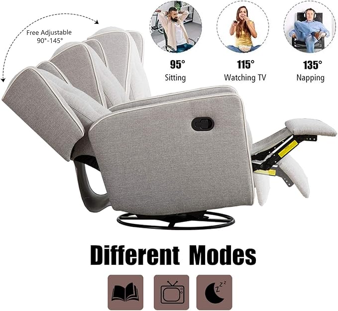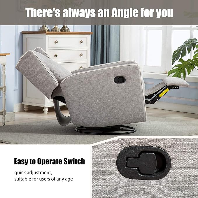 Swivel Rocker Recliner Chair, Nursery Glider Chair, Nursery Rocking Chairs, Manual Reclining Chair, Grey