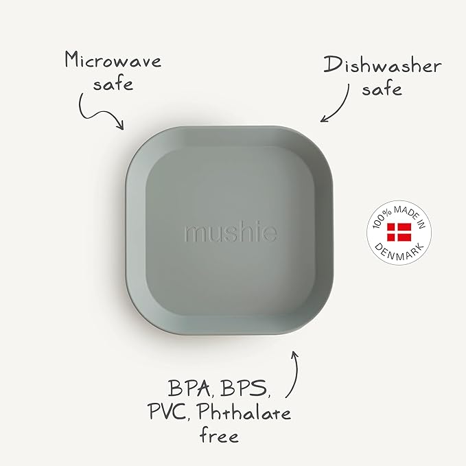 mushie Square Dinnerware Plates for Kids | Made in Denmark, Set of 2 (Blush)