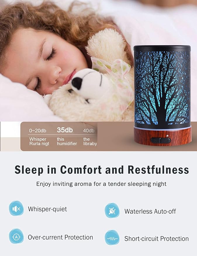 Essential Oils Diffuser for Home,150ML Aromatherapy Diffuser,Birthday Gifts for Women mom,Metal Cool Mist Humidifier with 7 Colors Lights Waterless Auto Off Air Diffusers(Tree)