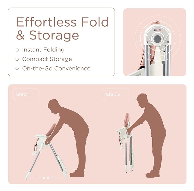 KÜB 3-in-1 Foldable Baby High Chair | 7 Height & 4 Recline Adjustable | Removable Seat & Tray for Easy Clean | 2 Locking Wheels | Multifunctional Infant High chairs for Babies and Toddlers Girl (Pink)