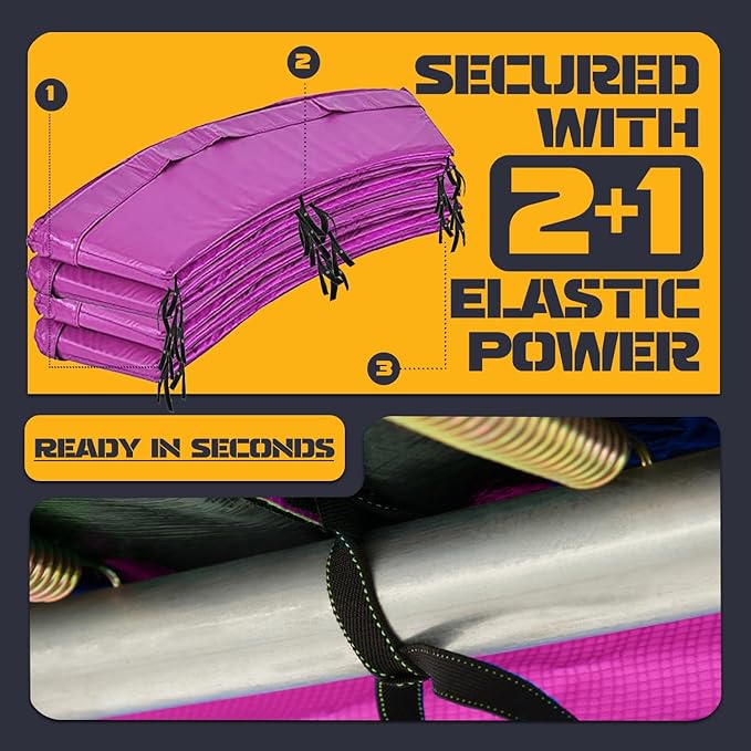 • ⭕️【 UV-Resistant & Weatherproof Trampoline Pad for Long-Lasting Use】Engineered with 2000-hour UV resistance testing, this trampoline cover blocks harmful sun rays & repels water, ensuring year-round outdoor safety. The double-reinforced elastic straps securely wrap around trampoline poles & frames, preventing shifting during play. Ideal as a trampoline mat replacement 15 FT for backyard setups, schools, or recreational centers demanding fade-proof and waterproof protection.Weather resist!