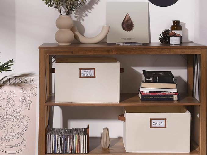 • Storage baskets with two sewn-in PU handles for easy carrying around, and the label holder for easy marking and identifying the items inside.