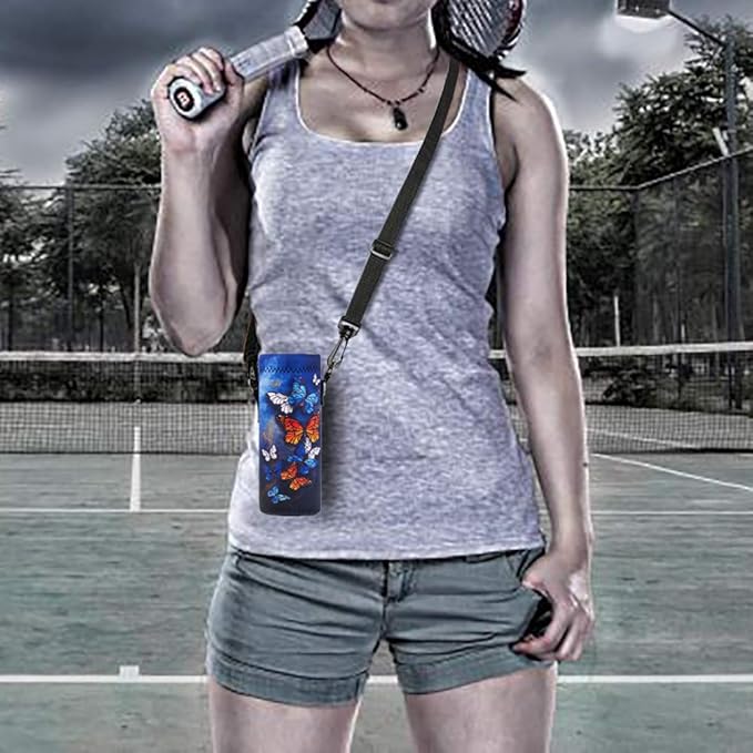 • Three Size for your choice: 500ML(16.9oz) water bottle bag,Length-7.48 inches,Diameter-2.75 inches;750ML(24oz) water bottle holder,Length-8.26 inches,Diameter-3.14 inches;1000ML(34oz) water bottle carrier,Length-9.45 inches,Diameter-3.34 inches.