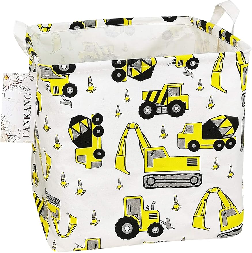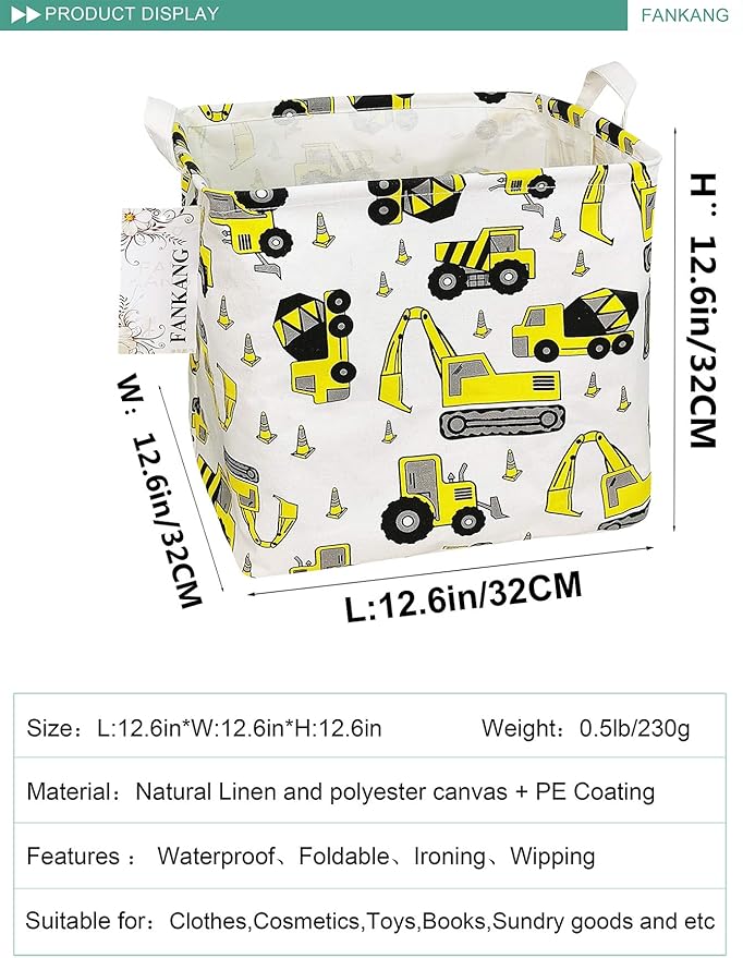 FANKANG Square Nursery Hamper Storage Bins Canvas Laundry Basket Foldable with Waterproof PE Coating Storage Baskets Gift Baskets for Children, Office, Bedroom, Clothes(Square-Engineering )